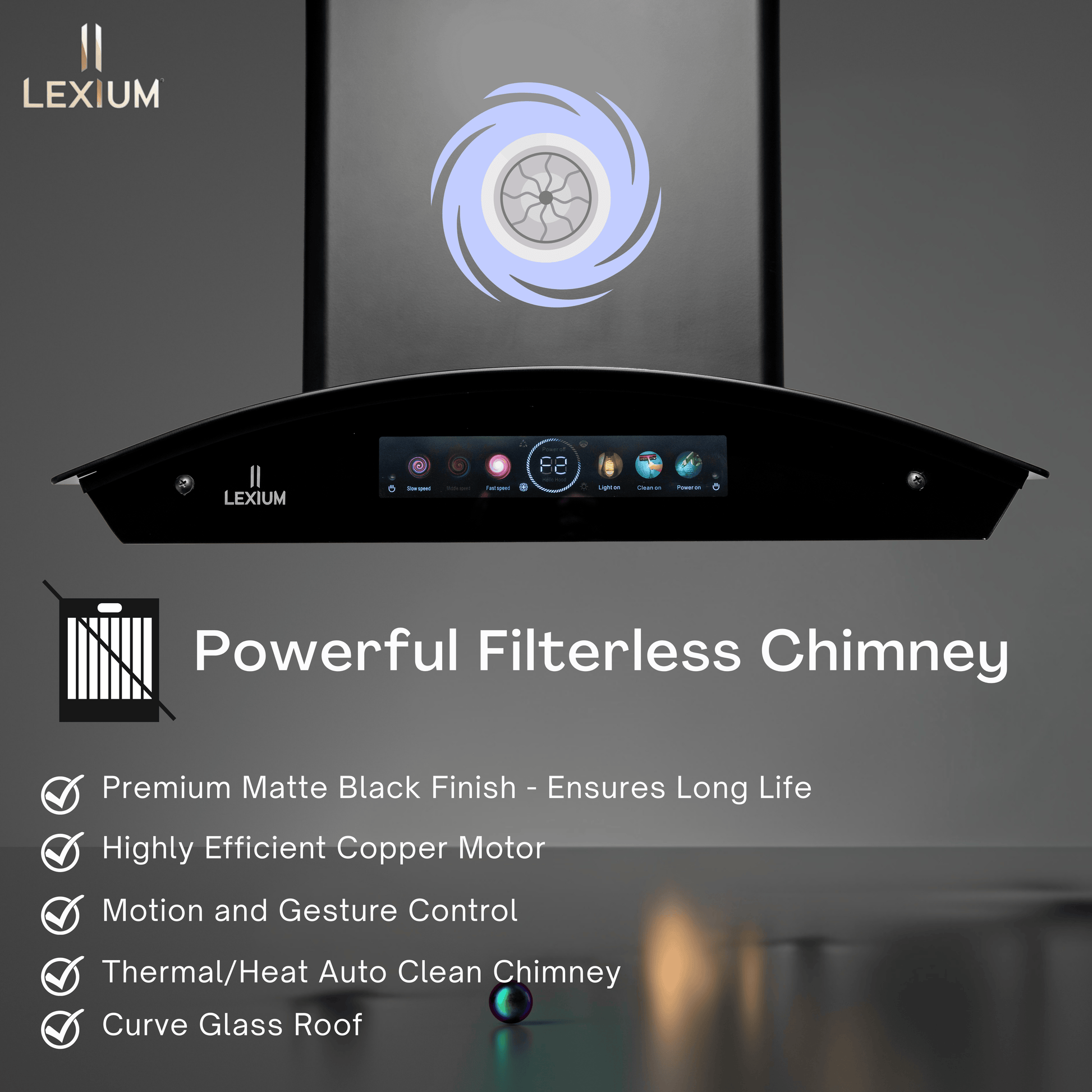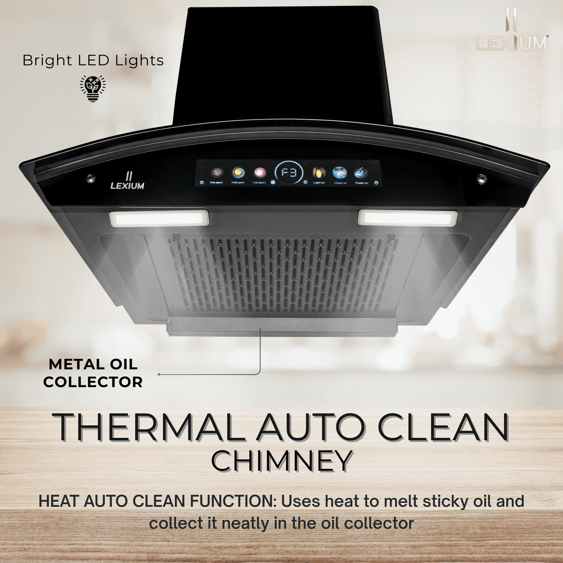 Powerful Airflow: 1500 m³/hr suction ensures instant removal of smoke and grease for a fresh kitchen environment.